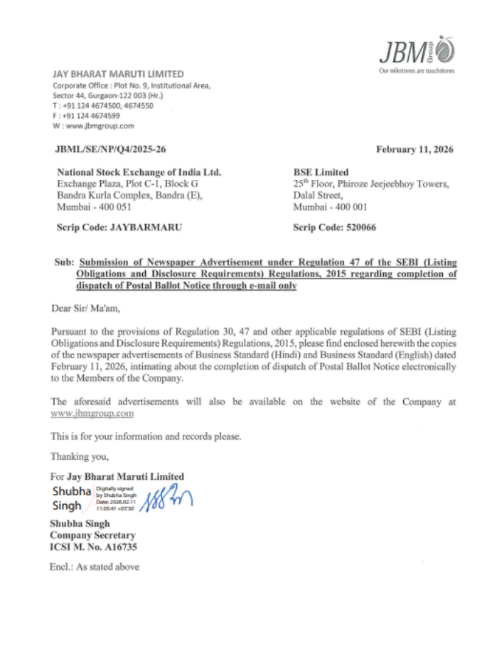 JBML Notice of Postal Ballot 2026